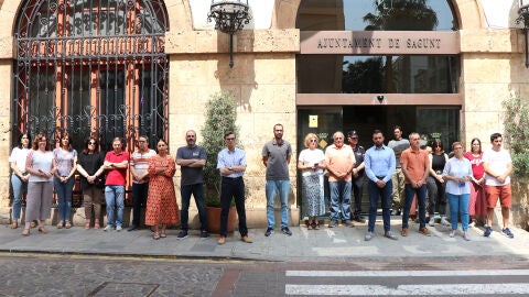 Silencio a las puertas del Ayuntamiento de Sagunto por el presunto asesinato machista perpetrado en Pontevedra