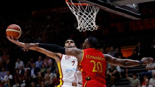 Volcando ofensivas al poste bajo, especialmente cuando sobre la cancha estaba Usman Garuba en vez de Willy Hernangómez, la selección visitante se mantuvo por debajo de la decena de puntos (87-79) tras una canasta De Sousa y un tiro libre de Bango. Pero con temple, Aldama no falló dos libres justo a continuación (89-79) y la defensa echó el cerrojo.