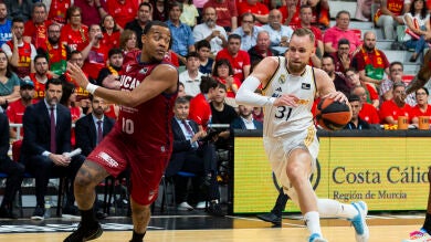 El UCAM CB entendió que esa era la forma de tener más opciones de conseguir la victoria ante el Madrid y su presión a toda la pista surtió efecto. Cinco puntos seguidos de Jonah Radebaugh y un 2+1 de Nemanja Radovic situaron el 29-21. Chus Mateo lo paró de inmediato pero los de Murcia siguieron entonados, especialmente desde la larga distancia. El quinto triple en ocho lanzamientos, éste convertido por Dustin Sleva, supuso el 34-25.