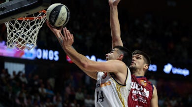 La segunda unidad del Real Madrid mantuvo la intensidad en la reanudación y ligeras ventajas a las que contribuían las imprecisiones de un UCAM que, lastrado por sus errores en el tiro y sus pérdidas, aguantaba como podía y se mantenía en el choque a base de defensa.