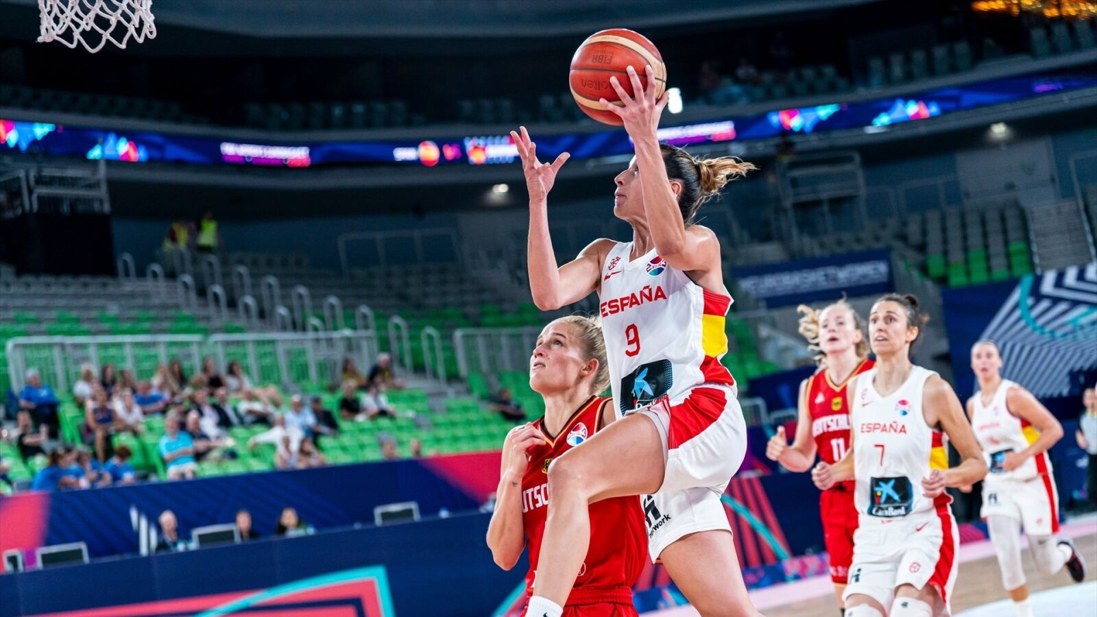 España ha firmado ante Alemania en los cuartos de final del Eurobasket su mejor y más coral encuentro en el torneo y, con una gran labor defensiva, logró un triunfo por 67-42 que le clasifica para una semifinal en la que se medirá a Hungría, pero que, además, le asegura una plaza para el preolímpico, primer paso para disputar los Juegos de París 2024.