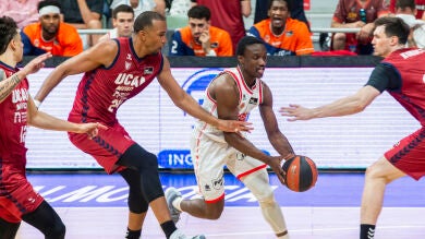 El encuentro comenzó con alternancias y así se pasó del 8-4 al 10-16 con ambos equipos ya anotando sus dos primeros triples. Sito Alonso fue el primero de los técnicos en pararlo con tiempo muerto superado el ecuador del primer cuarto tras encajar su equipo un 0-9 y dio entrada al pívot francés Yannis Morin, fichado por las lesiones de Simon Birgander y Marko Todorovic y que debutó con los granas. Los de Xavi Albert siguieron atacando con acierto frente a la zona 2-3 de los locales y aumentaron su ventaja hasta el 12-23 con Semi Ojeleye y Damien Inglis viendo aro. Una canasta de Nemanja Radovic dejó la diferencia en nueve puntos al término de ese cuarto inicial en el que el UCAM CB no se encontró cómodo y perdió cinco balones (14-23).