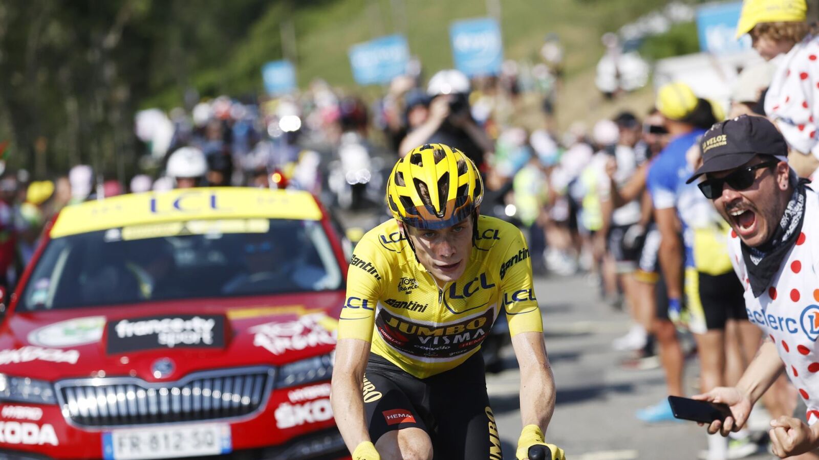 Hasta cinco veces intentó atacar el campeón de las últimas dos ediciones de la carrera, aunque en ninguna logró distanciarse del maillot amarillo. La etapa ha tenido de todo, incluso una caída de Pogacar en un descenso. El esloveno logró reincorporarse, pero ya no volvió a intentar atacar a un Vingegaard que se permitió el lujo de esperarle y dejar una imagen para el recuerdo de los dos ciclistas dándose la mano durante la etapa.