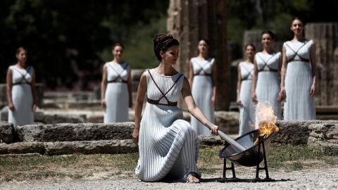 La llama olímpica solo se puede encender con rayos solares y, aunque existe un plan de contingencia, por suerte el día en Olimpia fue soleado y no hubo ningún problema para llevar a cabo la ceremonia.