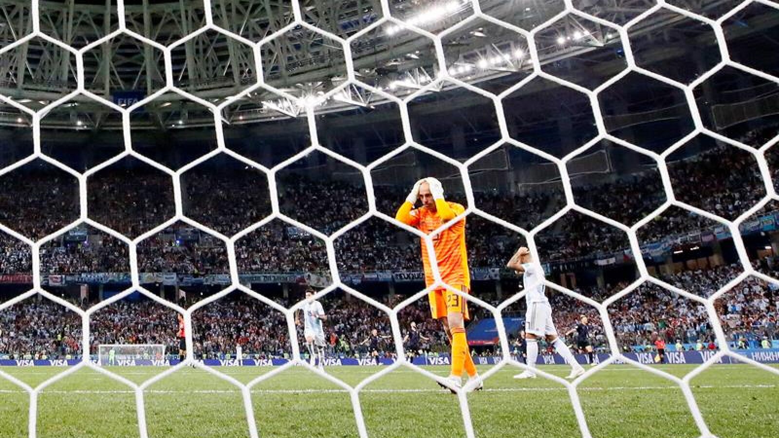 Willy Caballero apretó la soga de Argentina en el Mundial de Rusia con un error garrafal que desestabilizó a su selección y provocó su caída cuando apretaba a Croacia, clasificada para octavos con el gol regalado a Ante Rebic y con la traca final de Luka Modric e Ivan Rakitic. El portero del Chelsea será señalado durante mucho tiempo. Messi se quitará la losa de ser el objetivo número uno de las críticas. Su fallo, en el inicio de la segunda parte tras una pase absurdo que se convirtió en un presente jugoso para Rebic, frenó a su equipo cuando por fin había encontrado una pequeña identidad. El choque llegaba con historia. Con todas las críticas del mundo a sus espaldas, Argentina no podía fallar. El empate inaugural ante Islandia dejó un saco lleno de dudas para los hombres de Jorge Sampaoli, pero el más señalado fue Lionel Messi tras fallar un penalti que podría haber sido decisivo. Ese error provocó el debate eterno sobre el jugador del Barcelona y su suficiencia cuando juega con la selección. ¿Es capaz Messi de ganar sólo un Mundial? ¿Eso es sólo cosa de Diego Armando Maradona? ¿Messi no rinde igual con la "Albiceleste que en su club? ¿Messi no está igual de bien de acompañado en Argentina que en el Barcelona? Cada vez que hay algún sobresalto saltan esas preguntas. Y, Messi, algún día puede cansarse. Pero, mientras los debates taberneros se expandían, Argentina tenía que ganar a Croacia. Esa era el verdadero problema. Una derrota la podía dejar casi fuera del Mundial en la fase de grupos y eso sí que sería una tragedia. Por lo menos tenía la ayuda de un estadio que parecía la Bombonera, con mayoría absoluta de argentinos. Y para dar un giro a la situación, Sampaoli tocó su once y su esquema. Cambió del 4-2-3-1 al 3-4-3 con Gabriel Mercado, Enzo Pérez y Marcos Acuña como novedades. Funcionó pese al titubeo inicial. Por lo menos en la primera parte y porque Zlatko Dalic sacó a Luka Modric de la zona de creación y el cuadro balcánico se perdió. El centrocampista del Real Madrid se adelantó en el campo, dejó su hueco a Marcelo Brozovic y apenas tocó la pelota asfixiado por la presión argentina, que casi desde el minuto uno tocó arrebato para dar un puñetazo encima de la mesa. Aun así, Argentina, que se pelea contra sí misma, sufrió un susto enorme con una internada de Ivan Perisic que salvó Willy Caballero con una mano milagrosa. Con Modric fuera de combate, la línea de flotación de Croacia hizo aguas. Sin el metrónomo balcánico, Argentina, poco a poco, fue amasando ocasiones. Messi, extra motivado, peleó cada pelota y estuvo a punto estuvo de pinchar una caída del cielo con la que podría haber encarado al meta Danijel Subasic. Después, Maxi Meza se encontró con el cuerpo de Dejan Lovren en un remate clarísimo; continuó Marcos Acuña con un centro envenenado que golpeó en el larguero de Subasic; y Enzo Pérez falló una clamorosa: solo, sin Subasic delante y con la portería entera para él, mandó la pelota al lateral de la red. Ese fallo después sería recordado. Se echaría en falta ese gol. Podrá pasar a los anales de los errores, al estilo Julio Cardeñosa con España en 1978. No fue tan grande, pero sí muy doloroso. Y, como Argentina se pelea consigo misma, o eso parece, en la reanudación ella misma se encargó de ponerse una soga al cuello. Igual que será recordado el fallo de Enzo Pérez, el de Willy Caballero también tendrá su historia. El portero del Chelsea decidió dar un pase picado a Mercado y le salió un churro que aprovechó Ante Rebic para inaugurar el marcador con una volea que no era fácil. Entonces, "La Bombonera" de Nizhny Novgorod encontró su víctima y no dejó de silbar a su portero cada vez que tocaba la pelota. El daño estaba hecho, pero aún quedaban 27 minutos en los que Argentina aún podía soñar con despertar de la pesadilla. Sampaoli sacó al campo a Gonzalo Higuaín, a Cristian Pavón y a Paulo Dybala y se lanzó a por Croacia con desesperación. El orden del primer tiempo ya era pasado y Croacia se ordenó atrás para buscar la puntilla al contragolpe. Meza se acercó al gol con un remate blandito que repelió Subasic y que cayó en los pies de Messi. Rakitic, en el último momento, se encargó de desesperar a su compañero del Barcelona, que olía la derrota y unos cuantos días más de críticas porque tampoco brilló. Al final, no hubo milagro y además, Modric dejó un regalo visual final que ahogó del todo a Argentina y Rakitic se apuntó a la fiesta del mago del Real Madrid, que se inventó un disparo desde fuera del área que fue la puntilla final para los hombres de Sampaoli. La tragedia, que se mascaba antes del choque, finalmente explotó por un fallo absurdo cuando el cuadro albiceleste estaba amasando la victoria. Argentina, definitivamente, parece destinada a caer en la primera fase. Si a Islandia se le ocurre ganar a Nigeria, un empate en la última jornada contra Croacia clasificaría a los dos. Y Messi, una vez más, se quedaría sin Mundial. Y comenzaría el eterno debate. Incidencias: partido correspondiente a la segunda jornada del grupo D disputado en el Nizhny Nóvgorod Stadium ante cerca de 55.000 espectadores.