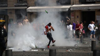Un aficionado da una patada a una botella durante los altercados en Marsella | Getty Images