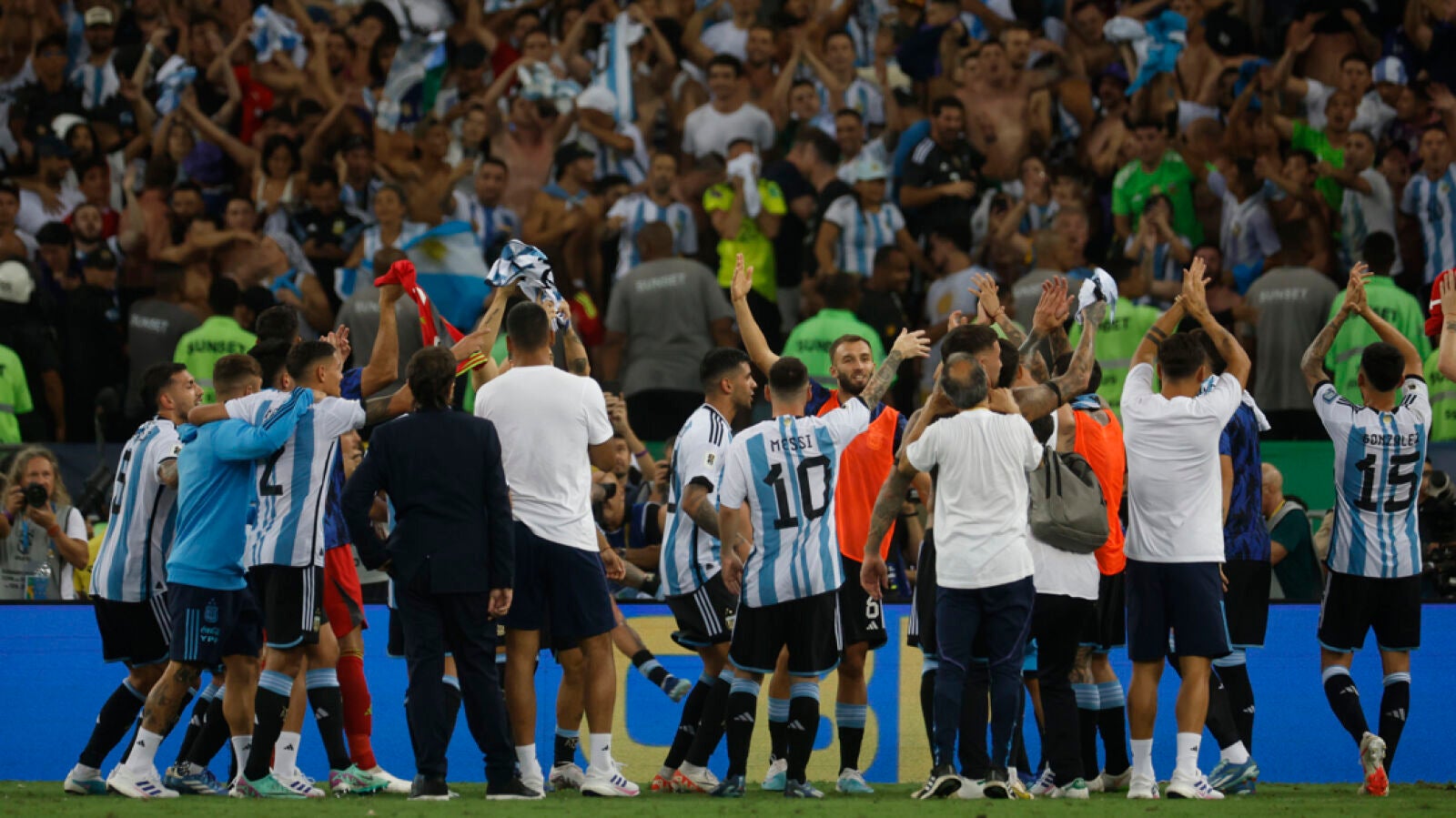Como la policía fue incapaz de contener los ánimos, los jugadores argentinos, con Messi a la cabeza, se dirigieron en grupo hasta la tribuna sur del Maracaná para pedir calma a los aficionados e incluso el Dibu Martínez llegó a enfrentarse a la policía.