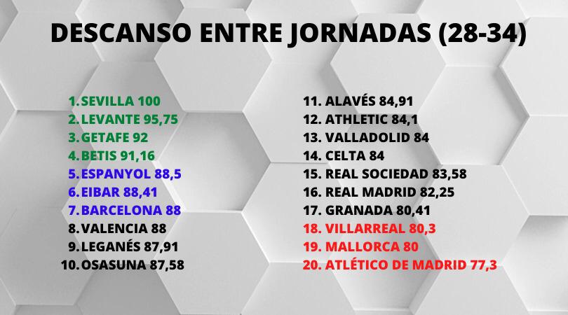 El Atlético de Madrid es el equipo que menos descansa entre jornadas; el Sevilla el que más