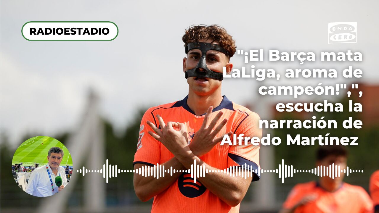 Justo en la última jugada de la primera parte, Fermín anotó el primer gol del encuentro. "Cubarsí que roba la pelota, mete al espacio, arranca Fermín como un poseso. Qué bien define el onubense, por abajo, ajustado, marca el primero para el líder y futuro campeón. El Barça mata LaLiga, aroma de campeón. El Barça toca y acaricia el título", narraba Alfredo Martínez en Onda Cero.