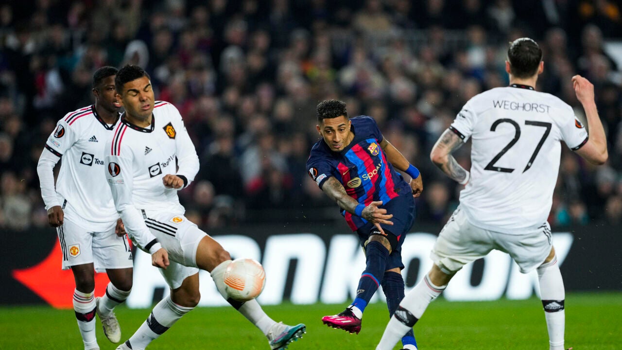 Apenas siete minutos después, Koundé, en propia puerta, ponía por delante a los ingleses en el marcador. Ya en la recta final, en el minuto 76, Raphinha sorprendía a la zaga del United y a De Gea con un centro destinado a Lewandowski que pasó por las piernas de Varane y se introdujo en la meta del portero español.