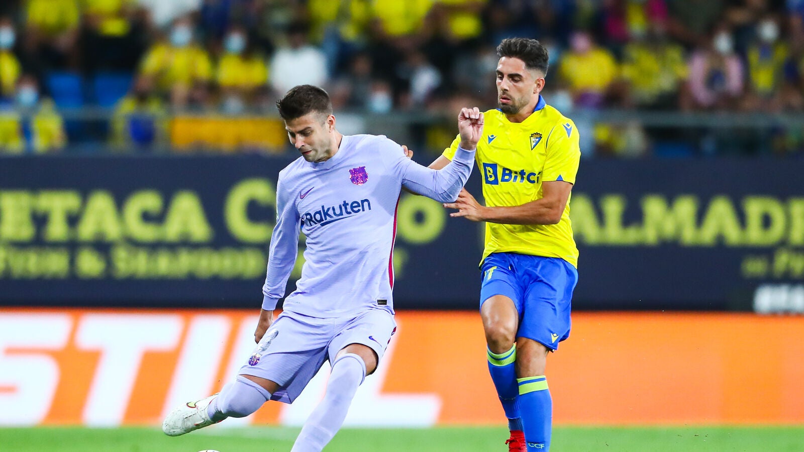 El guion del encuentro estuvo bien marcado desde el comienzo. El Barça dominaba a través de la posesión sobre un Cádiz que esperaba atrás sus ocasiones a la contra. Dest fue el primero en avisar, con una buena jugada personal que finalizó con un disparo que se marchó alto. Los cadistas no se amedrentaron ante el monólogo azulgrana y poco después Sobrino protagonizó una cabalgada que desbarató Piqué lanzándose al suelo dentro del área de forma magistral.