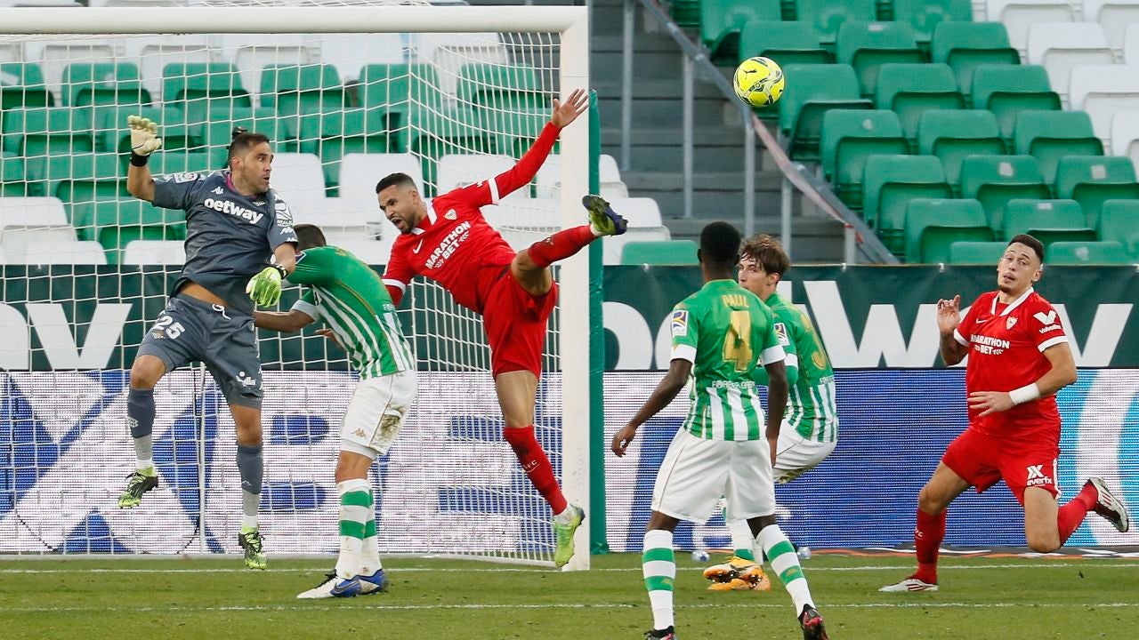 El Sevilla mejoró en la segunda mitad y lo intentó en ocasiones del argentino Lucas Ocampos y luego del serbio Nemanja Gudelj, aunque entre medias el Betis, más incisivo, tuvo el triunfo en sus manos, pero no lo aprovechó al errar Fekir un penalti del argentino Marcos Acuña sobre él mismo al hacer una gran parada Bono, que dio un punto a su equipo.
