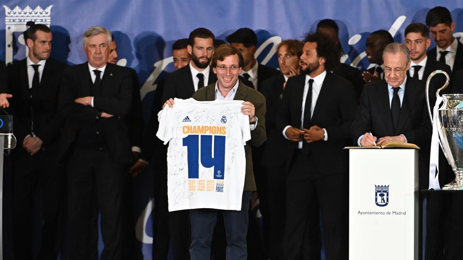 El Real Madrid concluyó los actos institucionales de celebración tras ganar la 34ª Liga de Campeones con su visita al Ayuntamiento de Madrid en el que el alcalde José Luis Martínez-Almeida hizo de maestro de ceremonias sin olvidar su favoritismo por el Atlético de Madrid.