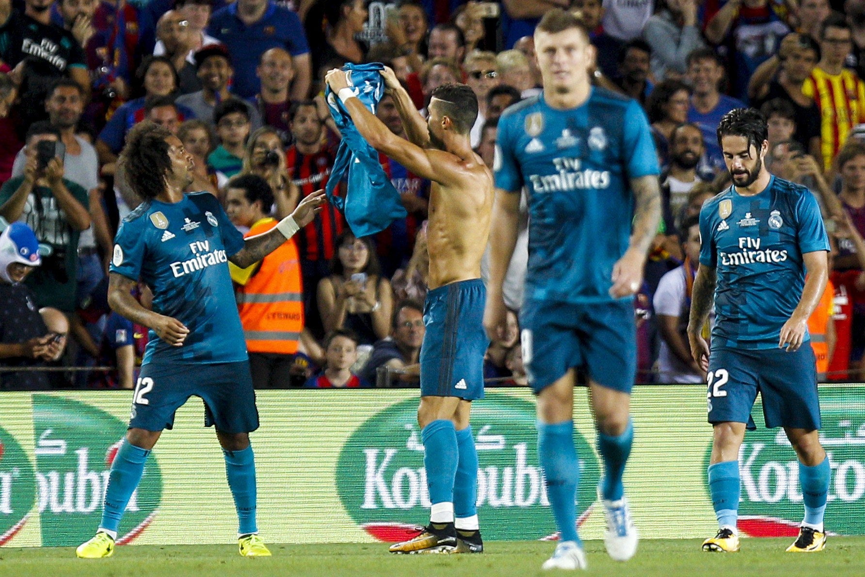 Cristiano Ronaldo, salió al terreno de juego en la segunda parte y logró marcar un golazo, que celebró como lo hizo Messi en el Bernabéu; se quitó la camiseta y la mostró al público. Al portugués le costó el gesto la primera amarilla y, minutos después, fue expulsado tras una acción polémica con Umtiti.