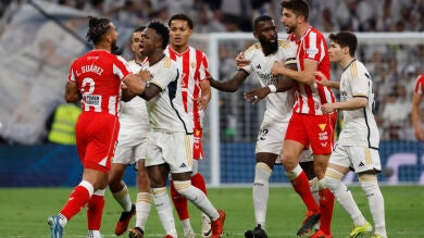 Vuelve a intervenir Hernández Hernández: "Sí, cuando se lo va a quitar con el brazo, al bracear le golpea, se lo va a quitar de en medio y le golpea en la cara. ¿Vale?". Y apostilla: "Vámonos al vivo", concluyendo con esa frase que la jugada no necesita revisión para ver si Vinicius merecía o no la expulsión.