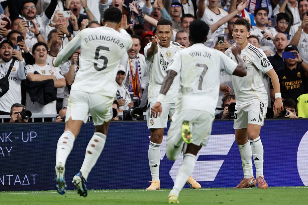 El Real Madrid ha ganado el primer clásico de la temporada con goles de Mbappé y Bellingham y agranda su ventaja en la clasificación sobre el Barça, al que ahora sacan cinco puntos. Un partido marcado por las decisiones arbitrales y la polémica final entre los jugadores y banquillos, así como el enfado de Vinicius al ser sustituido.
