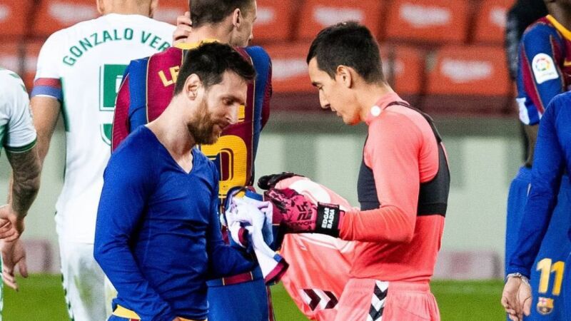 El encuentro entre Barcelona y Elche dejó una insólita imagen al final del mismo. El portero de los ilicitanos, Edgar Badía, le pedía la camiseta a Leo Messi. El argentino se la entregaba y en ese momento le susurraba a Badía que si le daba la suya. El jugador tardó unas décimas en reaccionar. No esperaba que Messi le hiciera esa petición a la que accedió, como no podía ser de otra manera. El guardameta ha reconocido en sus redes sociales que le pilló por sorpresa: