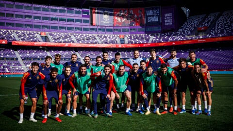 En portería, después de que David Raya jugase en Limassol, Unai Simón podría regresar a la titularidad, aunque Álex Remiro tiene muchas opciones de debutar en Pucela con la absoluta. José Luis Gayá, que no tuvo minutos ante Chipre, formará en el lateral izquierdo, mientras que Dani Carvajal ocupará el derecho e Iñigo Martínez y Robin Le Normand formarán como pareja de centrales.