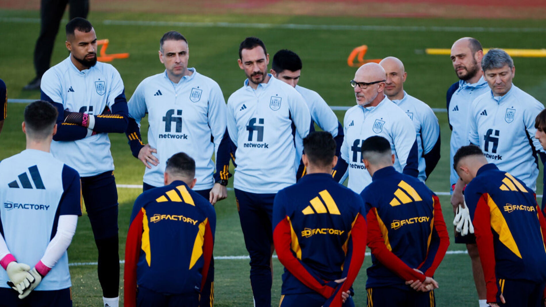 Su vuelo chárter de menos de una hora de duración aterrizó en el aeropuerto de Málaga-Costa del Sol, con los jugadores con chándal oficial y polo en el 'look' de viaje, azul en caso de los futbolistas y negro tanto en Rubiales como De la Fuente, cuerpo técnico y trabajadores de la selección.