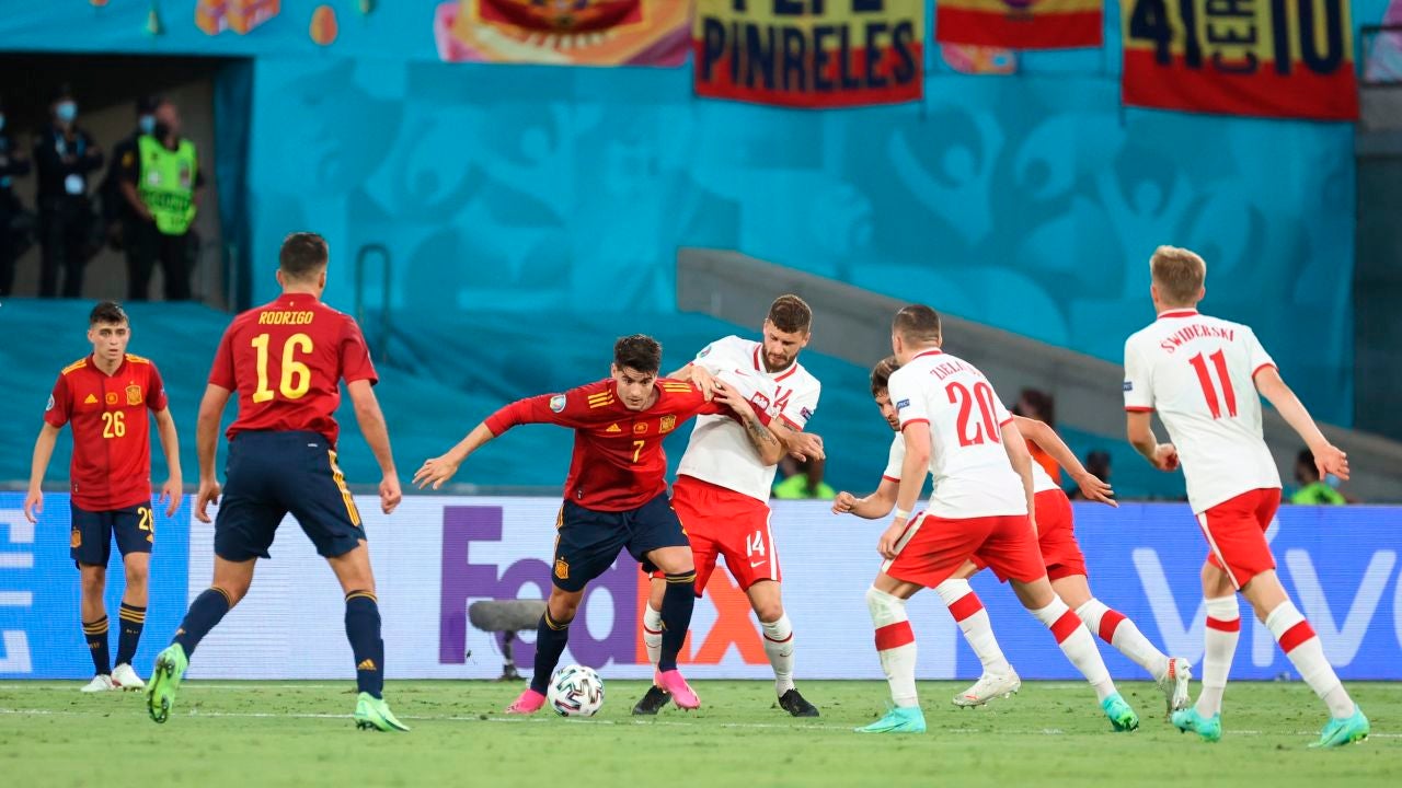 Un gol de Álvaro Morata en el minuto 26, anulado primero por el árbitro y validado después por el VAR, daba a la selección española una ventaja de 1-0 frente a Polonia antes del descanso.