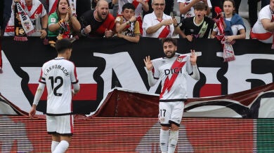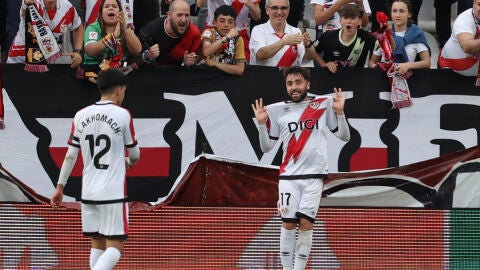 La afición del Rayo recibió al equipo con bufandas al viento, cánticos atronadores, aplausos y varios tifos en diferentes localizaciones del estadio. Se preveía una tarde especial y así fue, aunque la primera alegría llegó a los dos minutos, seguramente mucho antes de lo que la gente esperaba. El equipo madrileño trazó una buena jugada por la banda izquierda. Álvaro García ganó la carrera a defensor y puso un centro al corazón del área para que Ilias Akhomach rematase mordido al palo izquierdo de la portería defendida por Thomas Strakosha. Ese gol llevó el delirio a las gradas, aún con sitios vacíos de gente que llegó tarde al estadio, y supuso un mazazo para el equipo griego. Sus jugadores, con brazos en jarra, algunos mirando al suelo, lamentaron la temprana desdicha con cara de resignación.