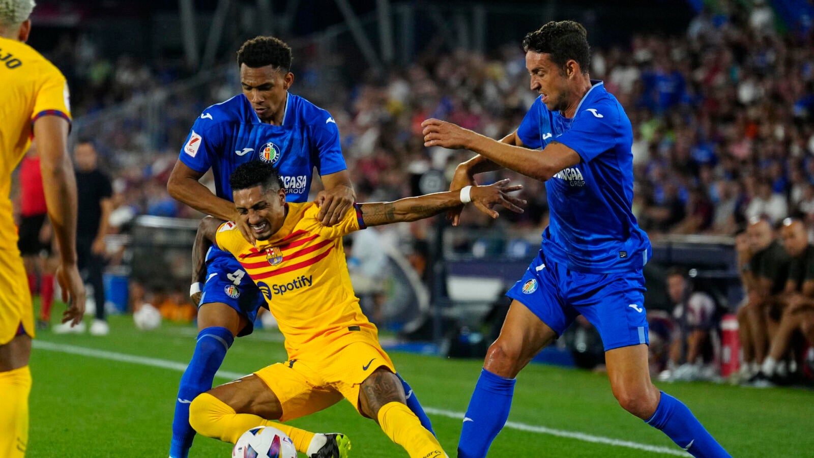 Getafe y Barcelona empataron en el Coliseum Alfonso Pérez en su estreno en la Liga EASports, en un partido muy accidentado en el que ambos terminaron con diez jugadores por las expulsiones de Jaime Mata y el brasileño Raphinha Dias, respectivamente.