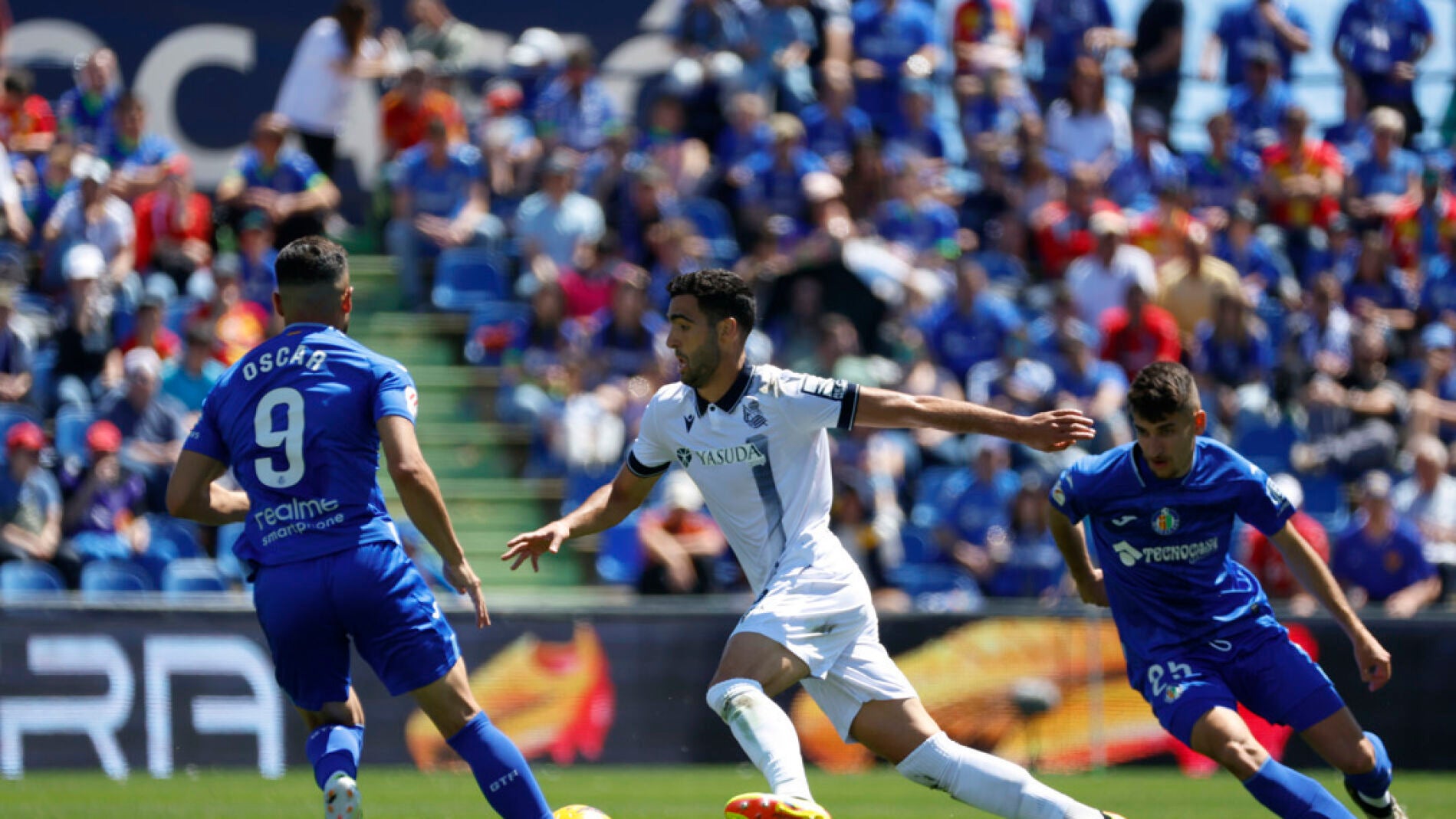 La Real, totalmente desdibujada, apenas reaccionó con alguna internada de Kubo, que apareció tras el descanso para sustituir a Barrenetxea. El japonés se convirtió en uno de los pocos incordios para el Getafe, que intentó cocinar sin éxito el tanto de la victoria.