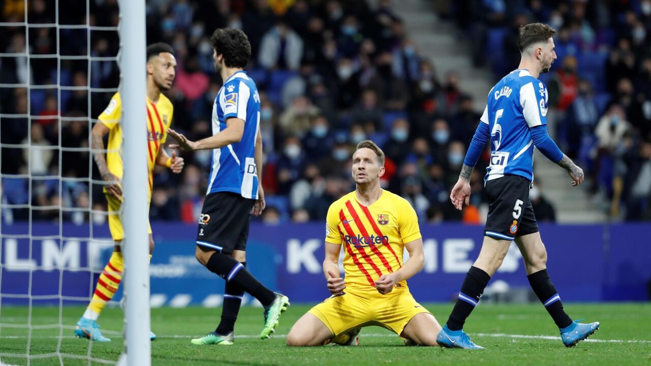 El Barcelona tuvo que esperar a un cabezazo de Luuk de Jong en el minuto 96 para sacar algo positivo del derbi contra el Espanyol en el RCDE Stadium, un desenlace para un partido que acabó con Piqué y Nico Melamed expulsados en el tramo final.