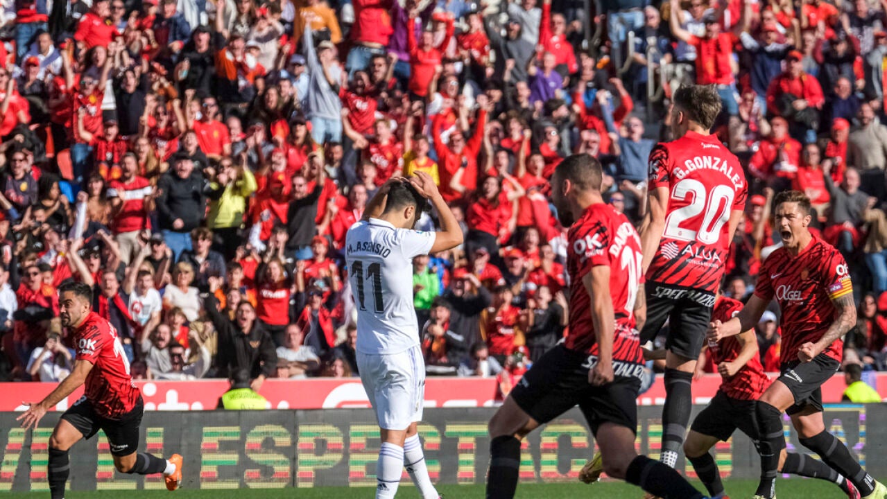El Real Madrid ha caído este domingo ante el RCD Mallorca en el Estadi Mallorca Son Moix (1-0), un partido trabado en el que se le acumularon los contratiempos, en forma de la lesión de Thibaut Courtois, el gol en propia puerta de Nacho y el penalti fallado por Marco Asensio, y que le deja a cinco puntos del líder FC Barcelona.