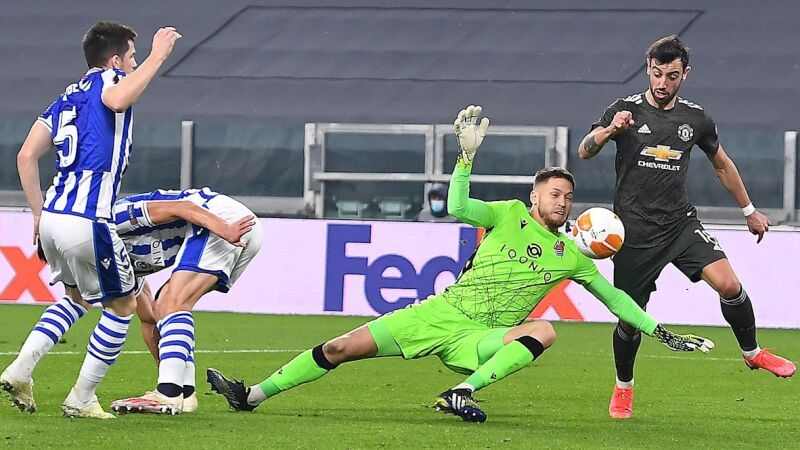 Durante un primer tiempo igualado la Real ha llegado a tener alguna oportunidad para adelantarse hasta que un error defensivo ha sido castigado por el portugués Bruno Fernandes para adelantar a los ingleses. El Manchester sacó no ha dado opción en un segundo tiempo en el que fue todavía más dominante, Bruno Fernandes selló su doblete tras intervención del VAR e instantes después Rashford ponía el tercero en el marcador. Con el tanto de Daniel James al final del partido la eliminatoria queda prácticamente vista para sentencia.