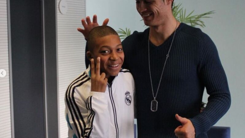 Con cuatro fotos luciendo con orgullo el escudo del Real Madrid en una visita a la ciudad deportiva de Valdebebas, en una bromeando siendo un niño con su ídolo Cristiano Ronaldo, Mbappé exhibió en redes sociales su felicidad.