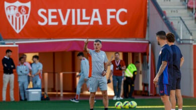 Tras la bienvenida protocolaria, el veterano preparador de Zaldibar dio las primeras instrucciones sobre el césped a sus nuevos pupilos, en un entrenamiento al que asistió la plana mayor del club del barrio de Nervión, encabezada por el presidente José Castro, su vicepresidente José María del Nido Carrasco, su director deportivo, Ramón Rodríguez 'Monchi', y sus dos principales colaboradores, el exdefensa Fernando Navarro y Emilio de Dios.