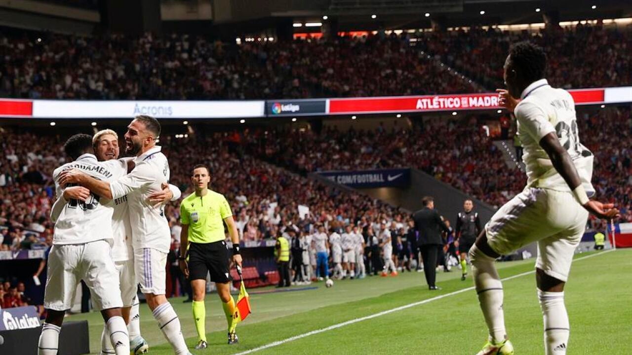 El Atlético de Madrid empezó el partido más activo, dominando el balón y generando más ocasiones de peligro, pero fue el Real Madrid el que, en la primera oportunidad que tuvo, inauguró el marcador en el Metropolitano gracias a un gol del brasileño Rodrygo Goes en el minuto 18 y en el 36 el uruguayo Fede Valverde dobló la ventaja. El primero ha llegado tras una preciosa acción con un pase magnífico de Tchouamnení que ha sobrepasado la defensa para que a bote pronto Rodrygo la clavara en la escuadra. El segundo vino tras una internada de Vinicius que remató al palo. El rechace lo aprovecHó un enrachado Valverde.