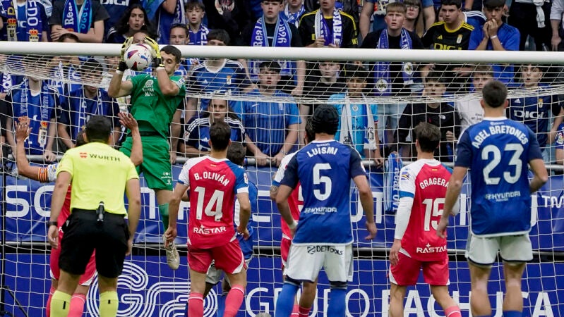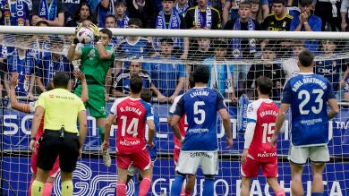 Fue a menos de 20 minutos del final cuando el Oviedo dio el primer golpe. Seoane lanzó una falta lateral desde la izquierda que sorprendió a Joan García, el portero perico sacó el balón como pudo y Alemao, atento, empujó el esférico a la red y puso patas arriba el Tartiere.