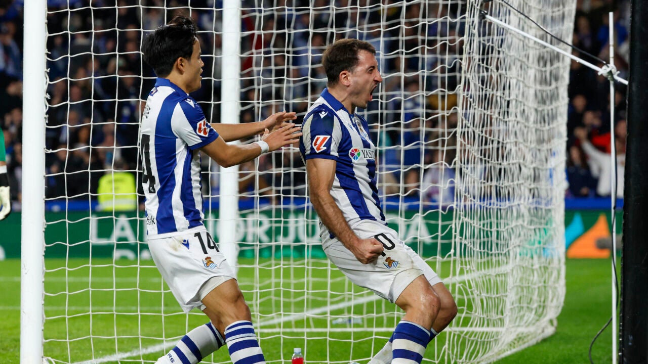 Sin ganas de rendirse, casi logra Vitor Roque recortar distancias tras infiltrarse al contraataque entre las filas realistas, aunque reculó bien Nayef Aguerd para rebañarle la bola al brasileño.