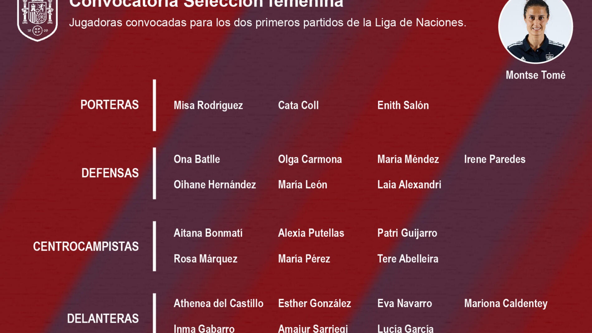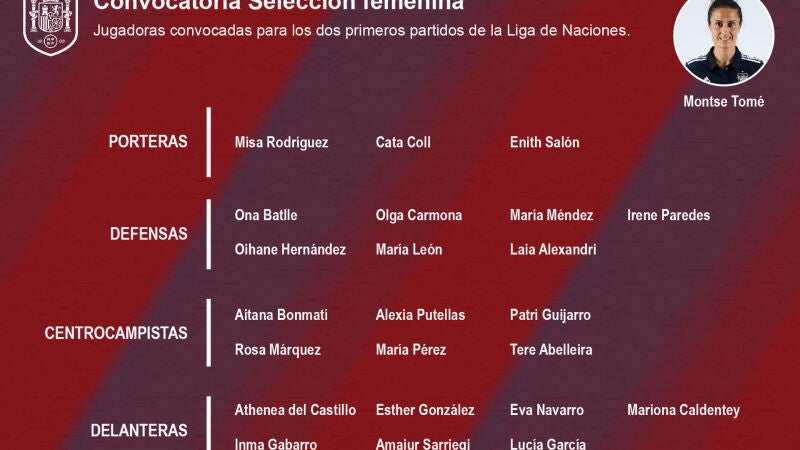 La seleccionadora nacional femenina fútbol, Montse Tomé, subrayó que "comienza una nueva etapa" y que el "contador empieza a cero" en su presentación oficial y el anuncio de su primera lista de 23 convocadas, en la que figura quince de las jugadoras campeonas del mundo, aunque no Jenni Hermoso para "protegerla", para las dos primeras jornadas de la Liga de Naciones contra Suecia y Suiza.