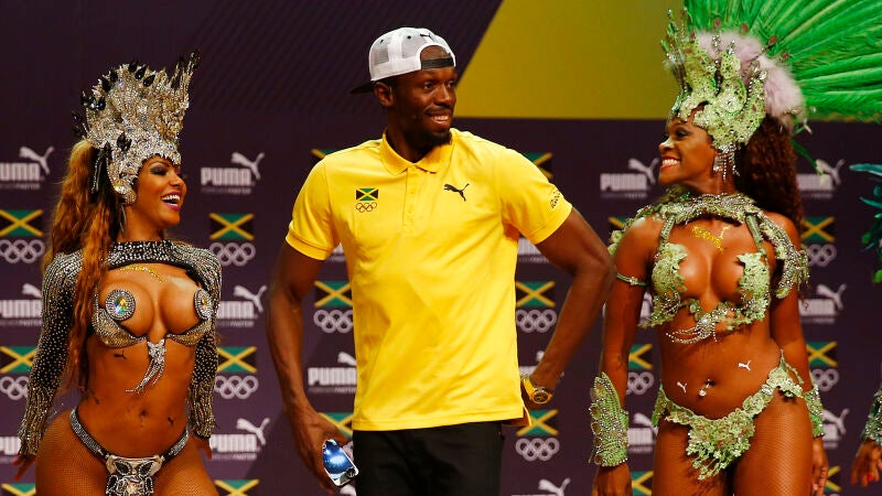 Usain Bolt revoluciona su rueda de prensa con unas bailarinas brasileñas