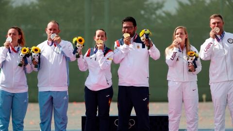 La andaluza tuvo el tiro de la sentencia pero dejó con vida a los de San Marino. Ahí, el entrenador rival decidió dar indicaciones a su tirador y éste falló de nuevo dejando el oro para España tras una mañana gloriosa en el Campo de Tiro de Asaka. La pareja española se desquitó de sus eliminaciones individuales el jueves con una actuación brillante desde la ronda anterior, en la que llegaron a la final con los mismos 148 platos, solo dos errores, que San Marino.