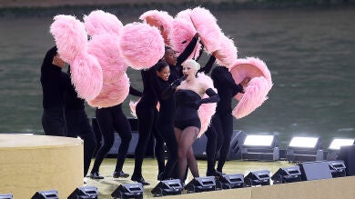La cantante estadounidense Lady Gaga salió de una estación de metro típicamente parisina, construida para la ocasión junto al Sena, para ofrecer la primera gran actuación musical sorpresa de la ceremonia inaugural de los Juegos Olímpicos, con un número de cabaret.