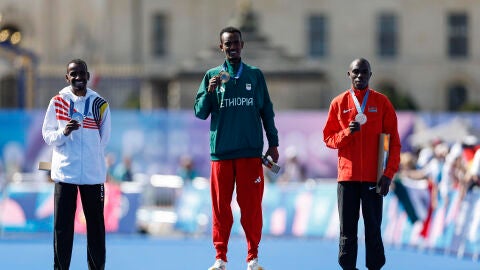 El etíope Tamirat Tola se ha proclamado este sábado campeón olímpico de maratón en los Juegos Olímpicos de París, después de cubrir los 42 kilómetros y 195 metros de la prueba en un tiempo de 2:06:26, nuevo récord olímpico, por delante del belga Bashir Abdi y el keniano Benson Kipruto, plata y bronce respectivamente.