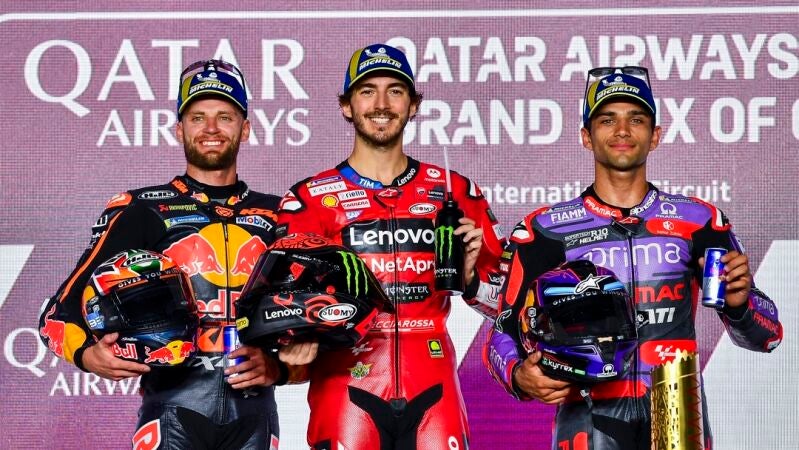 A siete vueltas del final Bagnaia apenas contaba con ocho décimas de segundo sobre Binder, que poco a poco le arañó décimas, si bien dio la impresión en todo momento que el italiano tenía controlada la situación, al contrario que Acosta, que a partir de perder el cuarto puesto comenzó a bajar su rendimiento, cediendo terreno primero ante Alex Márquez y después con Enea Bastianini. A 'Tiburón' Acosta le iba a tocar 'sobrevivir' de la mejor manera posible hasta el final de una carrera que en las posiciones de cabeza ya estaba muy consolidada, con Bagnaia líder, por delante de Binder, Martín, Marc Márquez y Alex Márquez en las cinco primeras posiciones, con éste 'acosado' por Enea Bastianini.