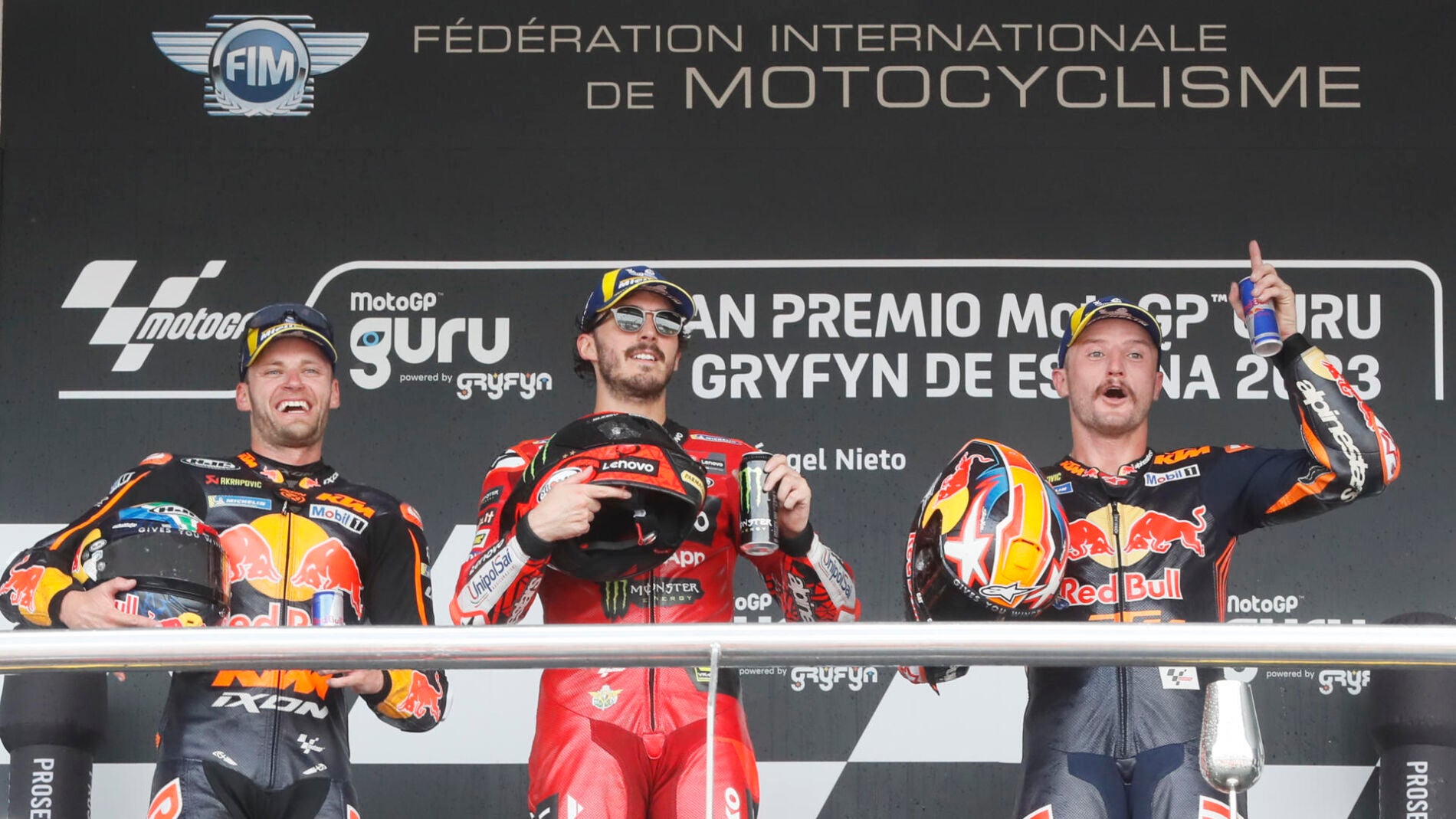 Así, el vigente campeón del mundo encabezó un podio en el que le acompañaron el sudafricano Brad Binder (KTM), ganador de la carrera al esprint, y el australiano Jack Miller (KTM), que completó el doblete de KTM.