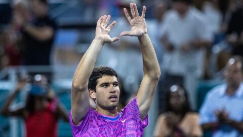 Alcaraz tuvo que lidiar con dos opciones de 'break' en contra, pero las resolvió con una brutal derecha paralela y rematando en la red. Después se puso en ventaja con un "¡vamos!" que se escuchó en toda Florida y solventó ese serio contratiempo con una dejada.