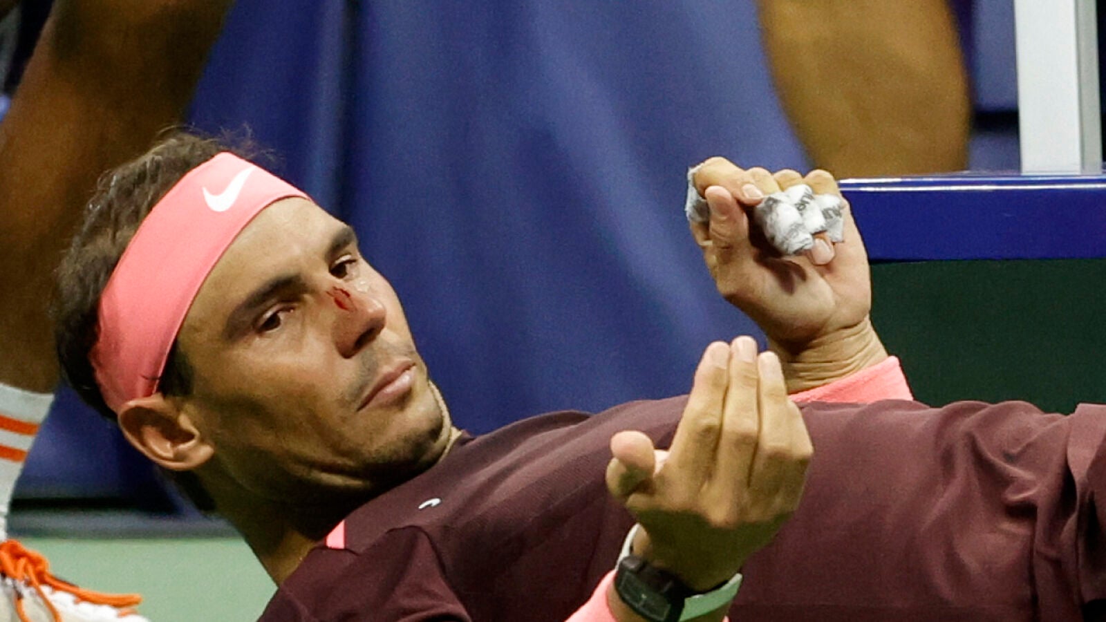En el intento de conectar un revés, Rafa golpeó con su raqueta al suelo y esta rebotó hasta impactar con violencia en la nariz. Le provocó un vistoso corte que le obligó a pedir un tiempo muerto médico para parar la hemorragia y recuperar lucidez.