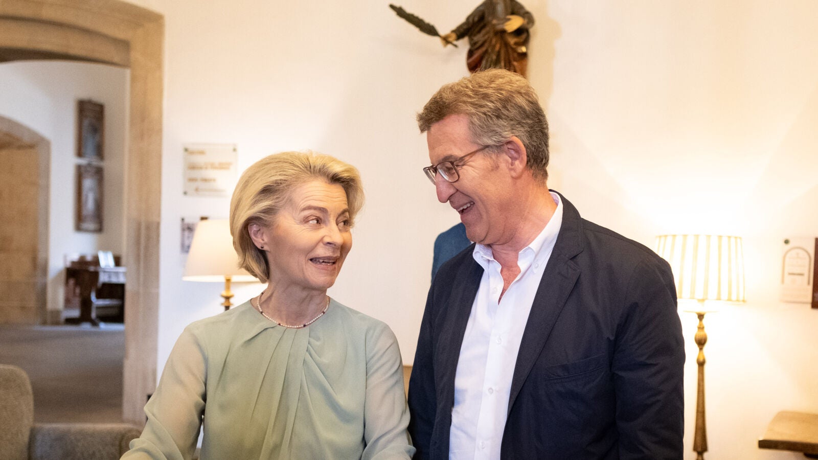 Von der Leyen ha comenzado la jornada en Galicia con una visita a la catedral de Santiago acompañada por Feijóo y el presidente de la Xunta. Después, el líder del PP y la presidenta de la Comisión Europea se desplazaran a Madrid para ver en el estadio del Santiago Bernabéu la final de la Champions League que disputarán el Real Madrid y el Borussia Dortmund.