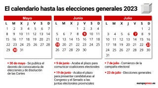 Es decir, ya se ha puesto en marcha el calendario electoral que da el pistoletazo de salida a las generales que concluirá con la constitución de las Cortes Generales a mediados de agosto.