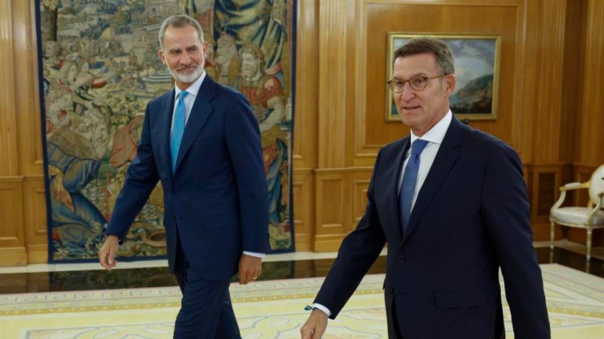 Este martes por la tarde el monarca ha convocado en Zarzuela a la presidenta del Congreso, Francina Armengol, para comunicarle su decisión de proponer a Feijóo. Así lo ha anunciado la presidenta del Congreso, tras su encuentro con Felipe VI que ha escuchado las posiciones de UPN, Coalición Canaria, el PNV, Sumar, Vox, PSOE y Partido Popular.