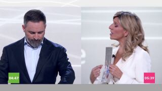 Yolanda Díaz, en un momento "¿Usted sabes quiénes son? Son sus dos diputados en Valencia. Se están riendo en un minuto de silencio a una mujer asesinada. Nos matan porque somos mujeres y negando la violencia sobre las mujeres provocan esto. Dejen de reírse de las mujeres". El líder de Vox ha acusado a Díaz de realizar una manipulación con una frase fuera de contexto.