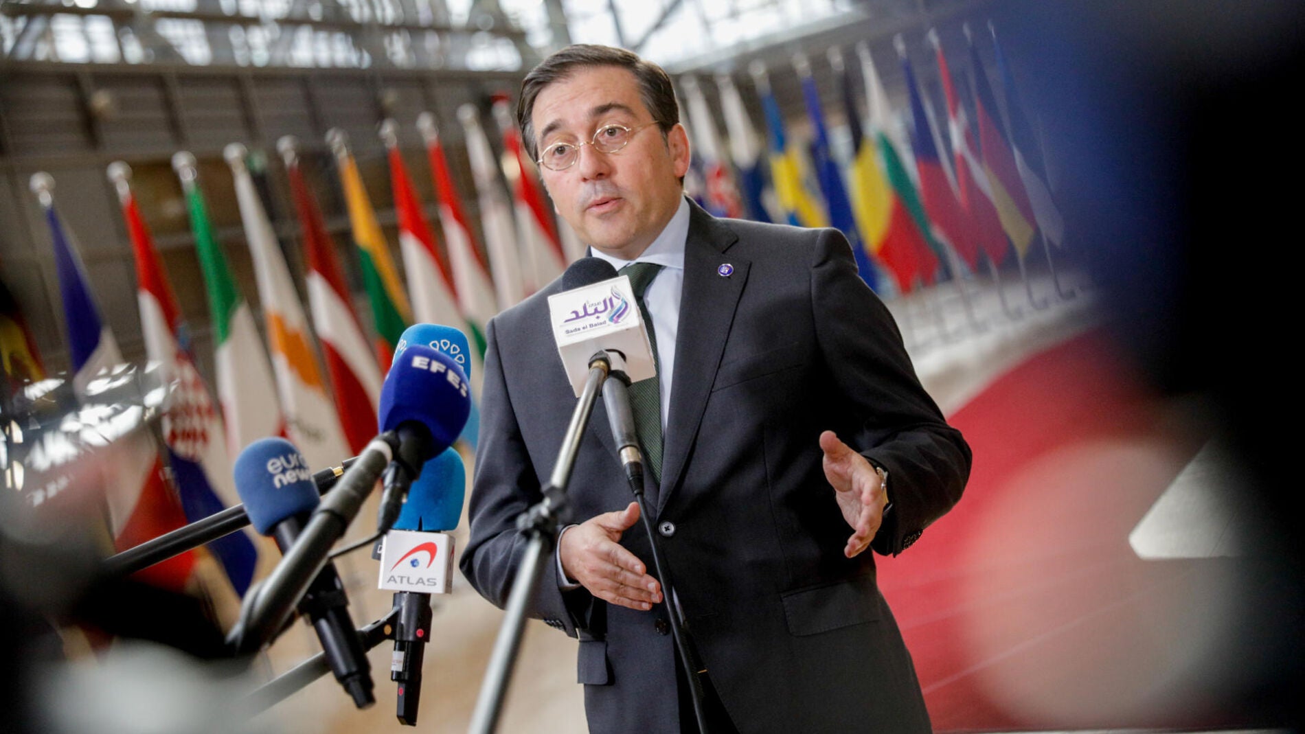 Antes del arranque de la reunión en Bruselas, el ministro de Asuntos Exteriores, José Manuel Albares, se apoyó en el derecho a expresarse en catalán, euskera y gallego que desde este martes se aplica en el Congreso de los Diputados para instar al resto de países de la Unión Europea a permitir su reconocimiento como lenguas oficiales del bloque comunitario.
