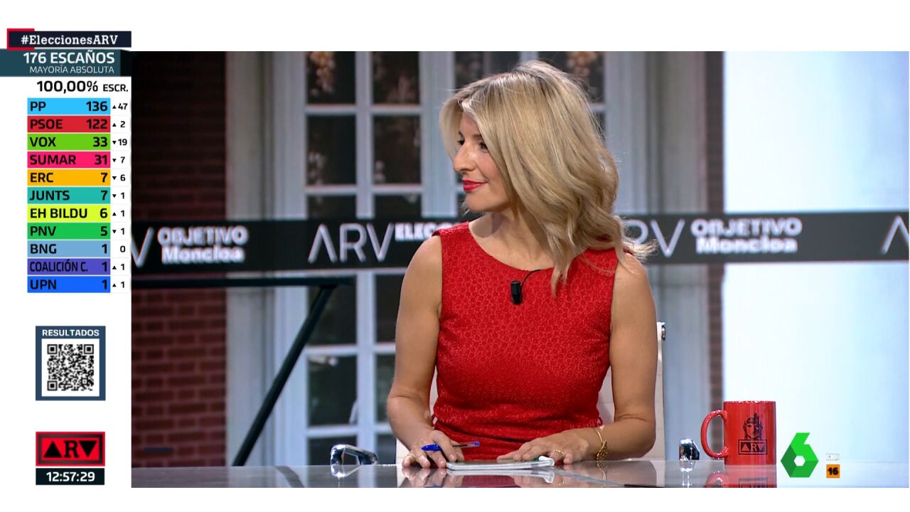La líder de Sumar ha concedido una entrevista en Al Rojo Vivo para analizar los resultados de las elecciones generales del 23J.